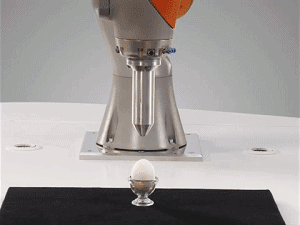 iiwa 可以以每秒10毫米和50毫米的速度,抵近物体,当遇到意外的阻碍后会以十分敏捷的状态瞬间撤回,这在工况下如遇特殊情况可以减少损失和大大增加安全系数。 分别以每秒10毫米和50毫米的速度 抵近一颗生鸡蛋 敏捷性足可以确保鸡蛋不破碎 ▼