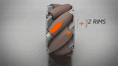 而之所以能做到如此灵活,完全是由于特殊的轮子设计 这种设计可以使得每一个轮子 无须转向即可完成任意角度的行进。。 特殊的子母轮设计